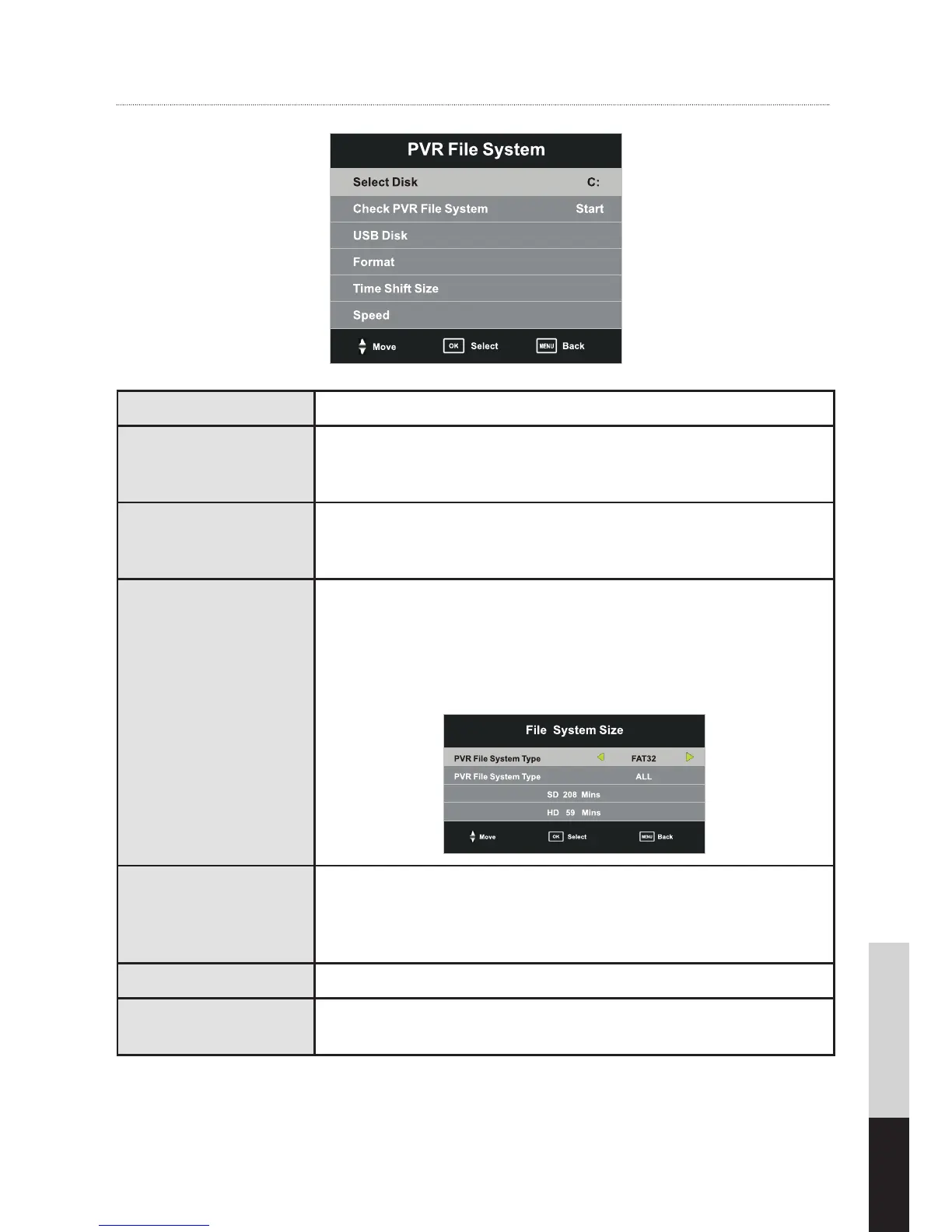 FS i PVR File System Type. Trykk på -knappene for å velge ønsket