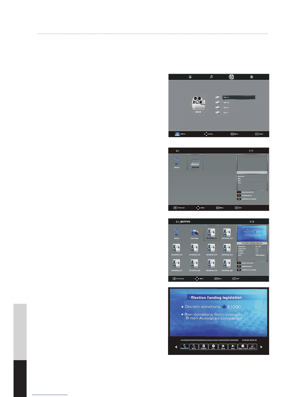 Du kan spille av et opptak fra opptakslisten eller fra en USB- lagringsenhet.