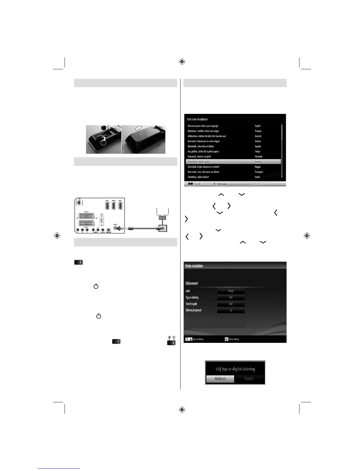 När du slår på TV: n för första gången visas menyn