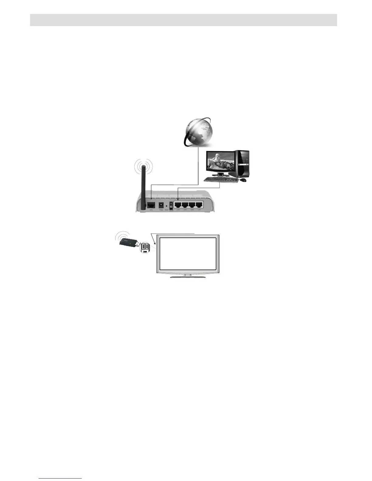 • Trådløs LAN adapter bør kobles direkte til TV-ens USB port. USB huber er ikke understøttet.