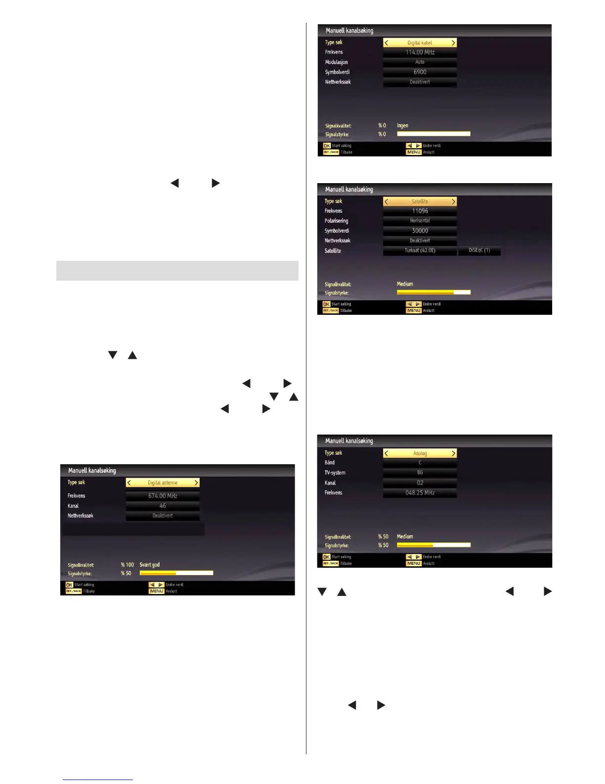 å bruke “ ”/“ ” og OK. Manuellt søk valgskjerm