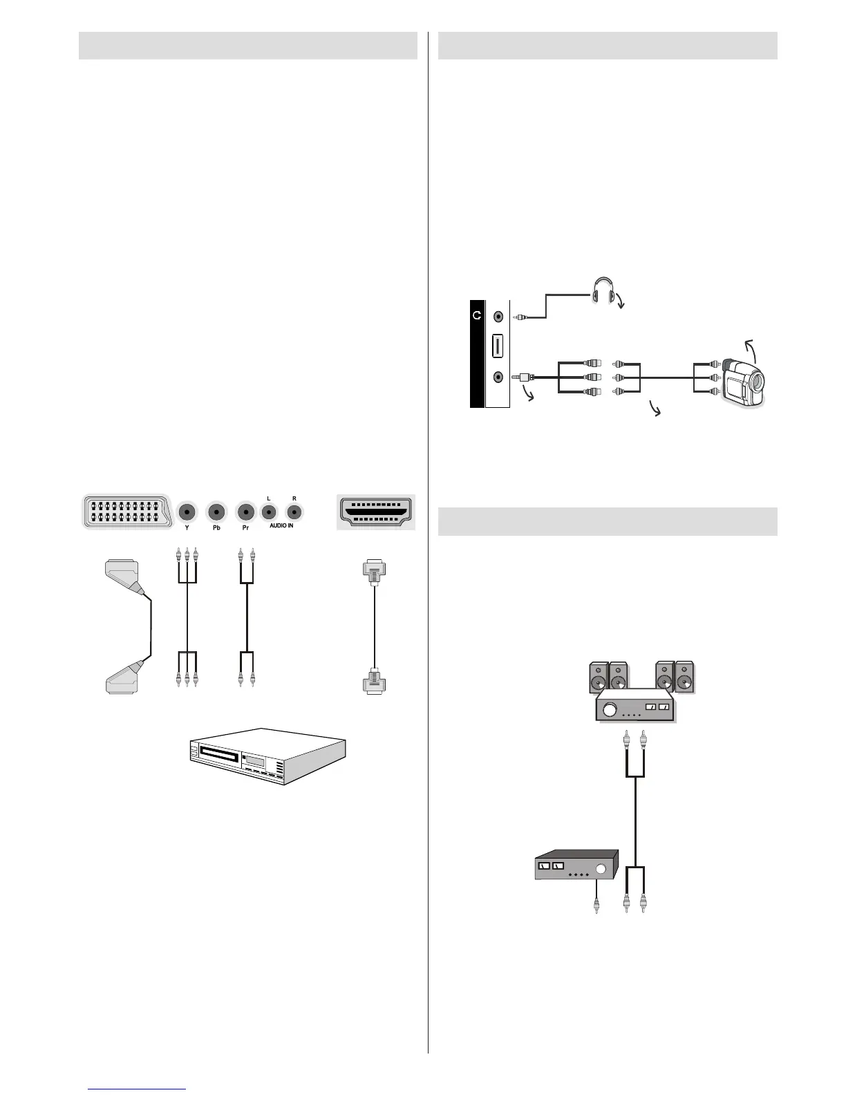 TV. Möjliga anslutningar visas nedan. Observera att