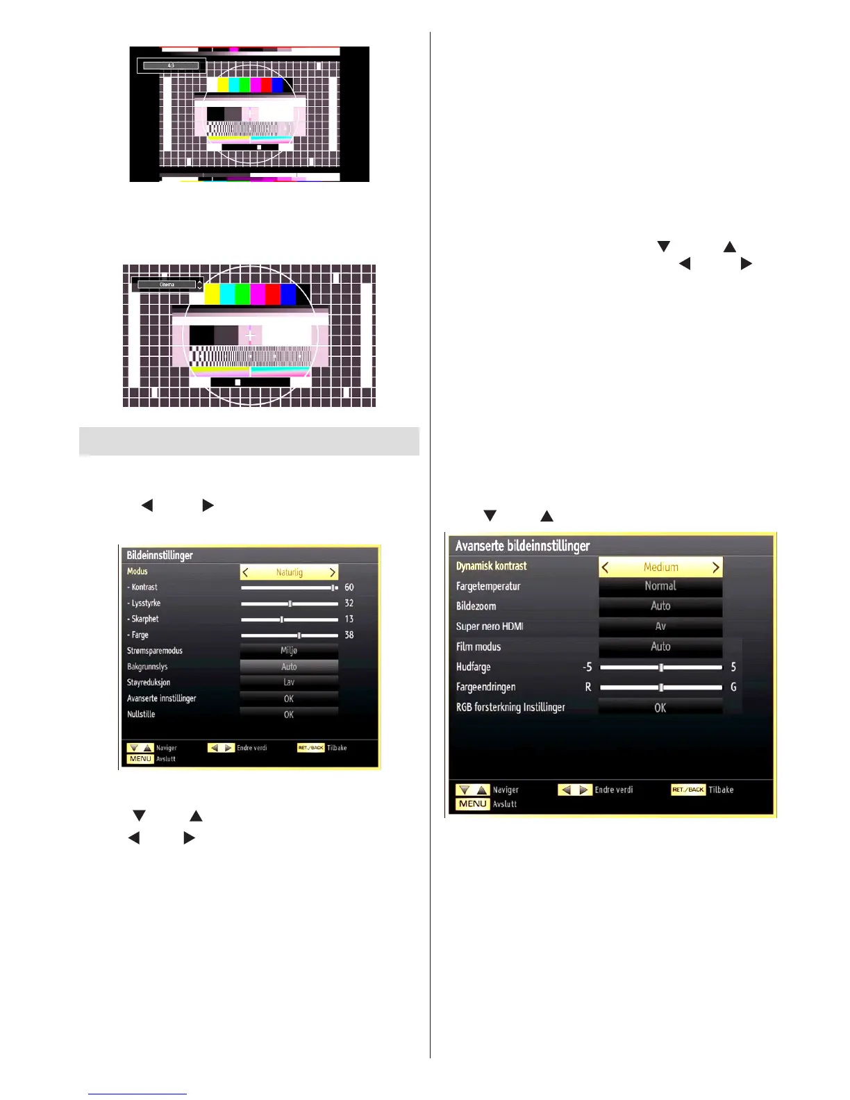 Bildeinnstillinger. Du kan benytte denne funksjonen til å
