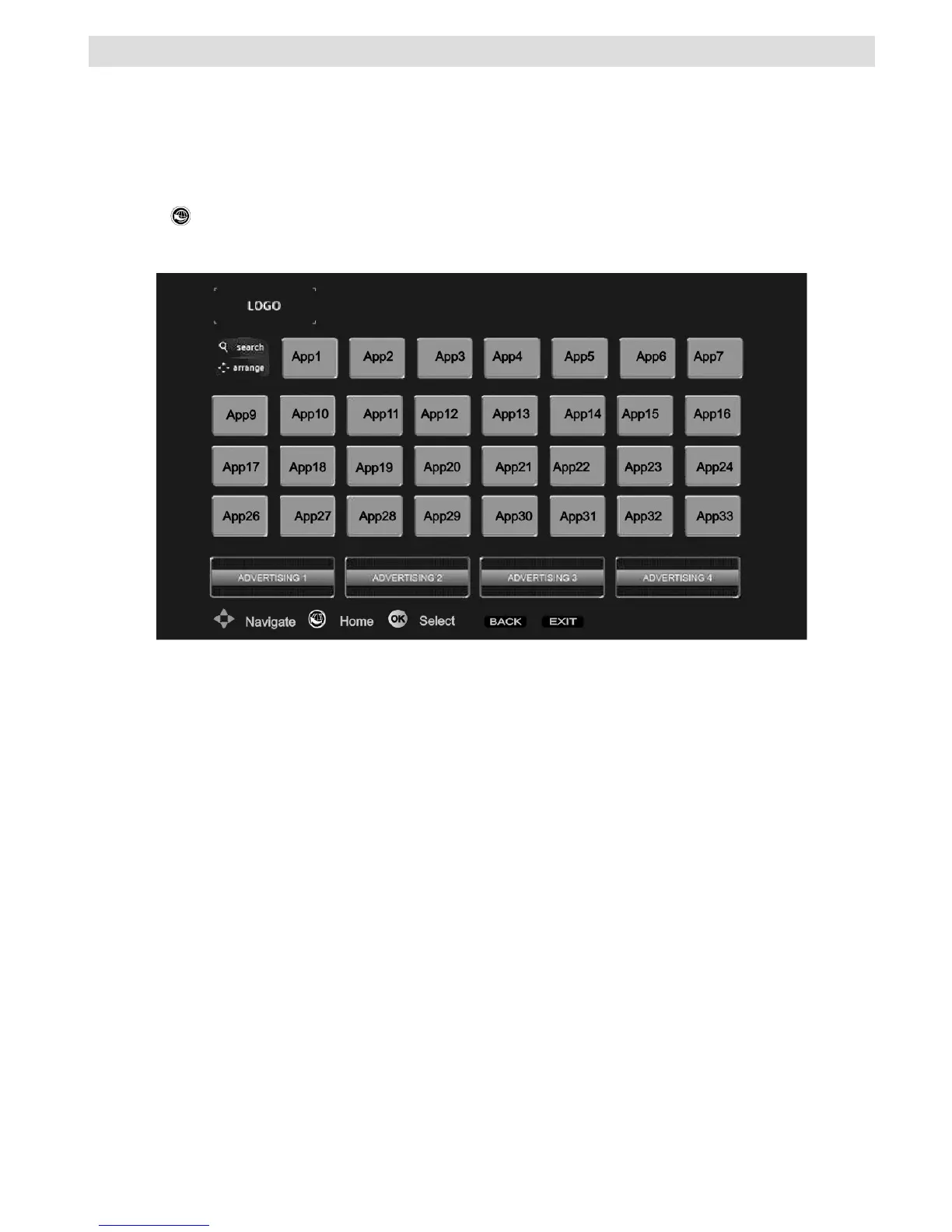 Trykk på “ ” knappen på fjernkontrollen og portal alternativer for programmet vises. Programvalg