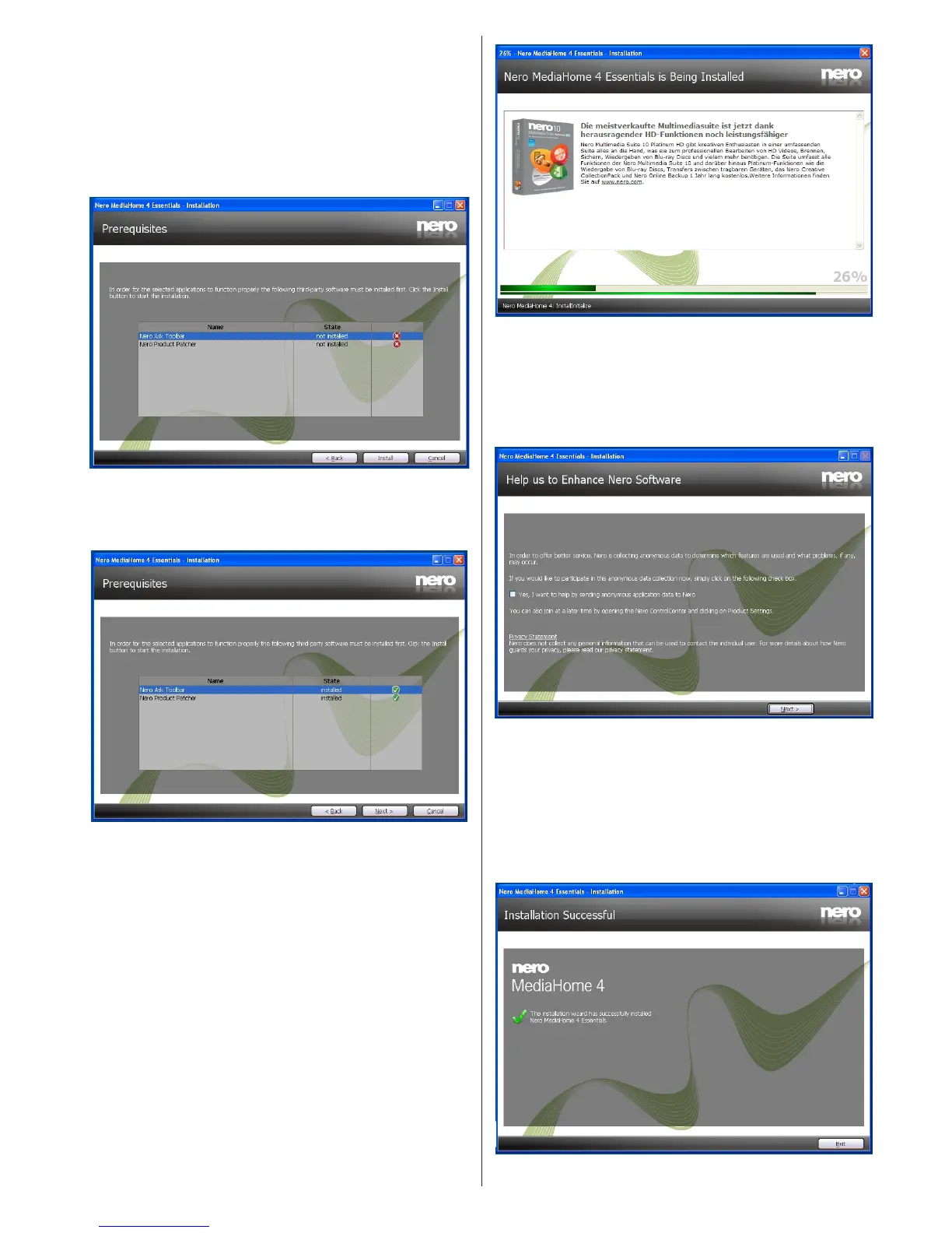 Nero Media Hjem Installasjons veiviseren sjekker