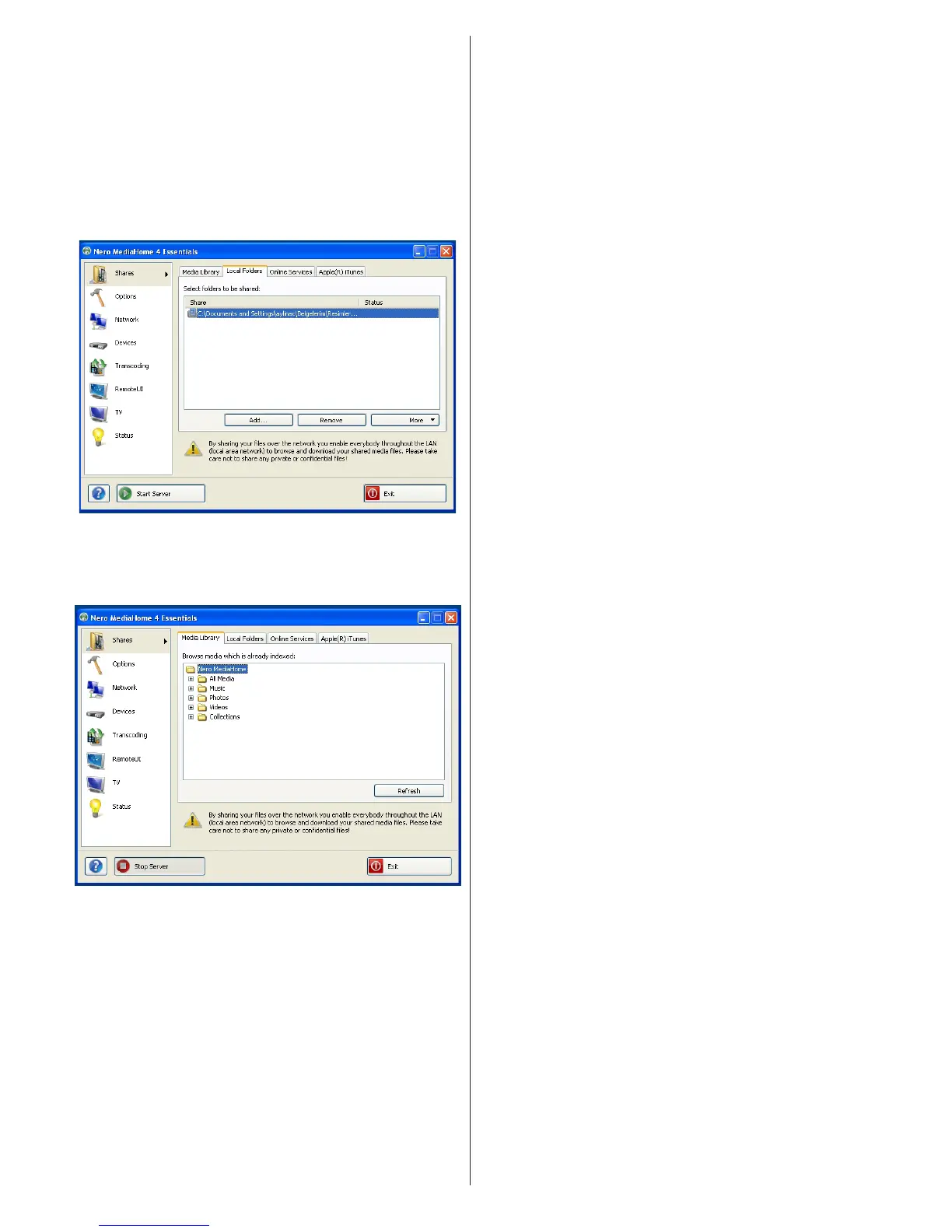 mappen du vil dele, og klikk START SERVER.