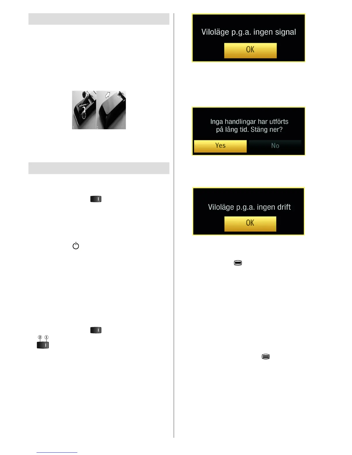 • Ställ om knappen “ ” till läget “|” så att TV:n