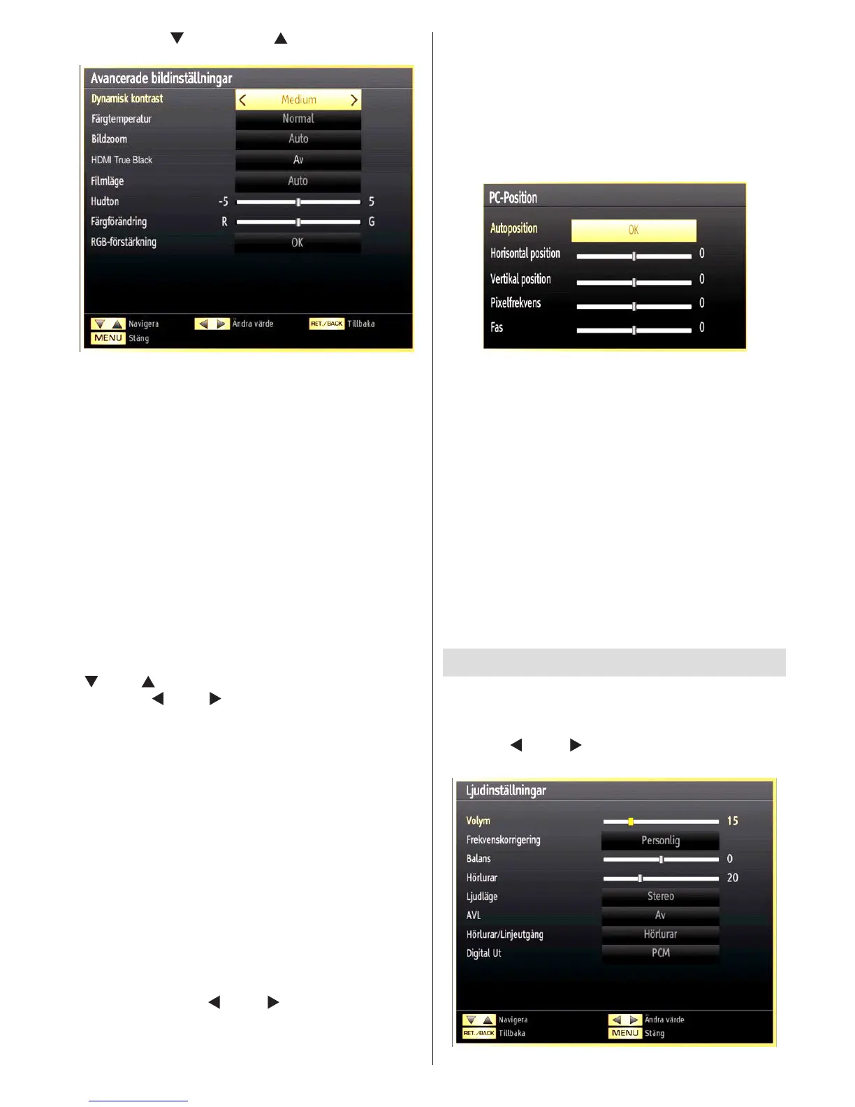 I VGA (PC)-läge kommer en del alternativ i bildmenyn