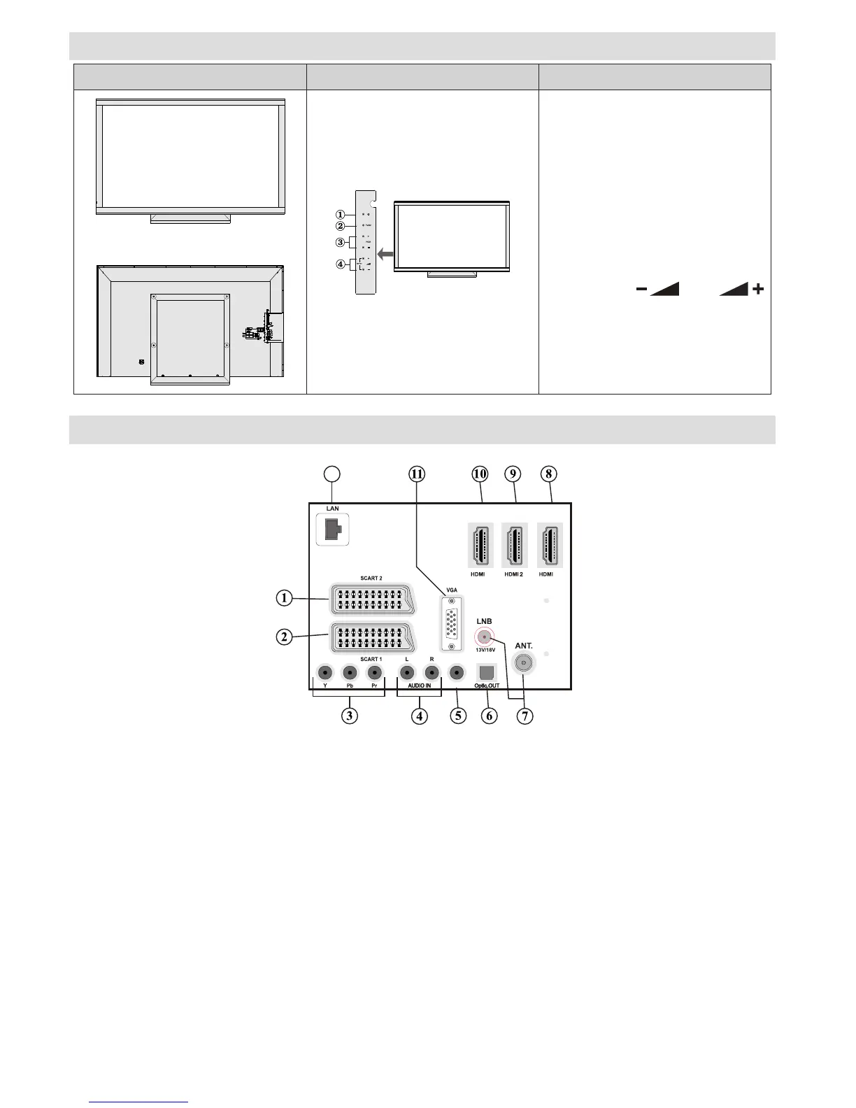 2. SCART 1 inputs or outputs for external devices. Connect the SCART cable between SCART socket on
