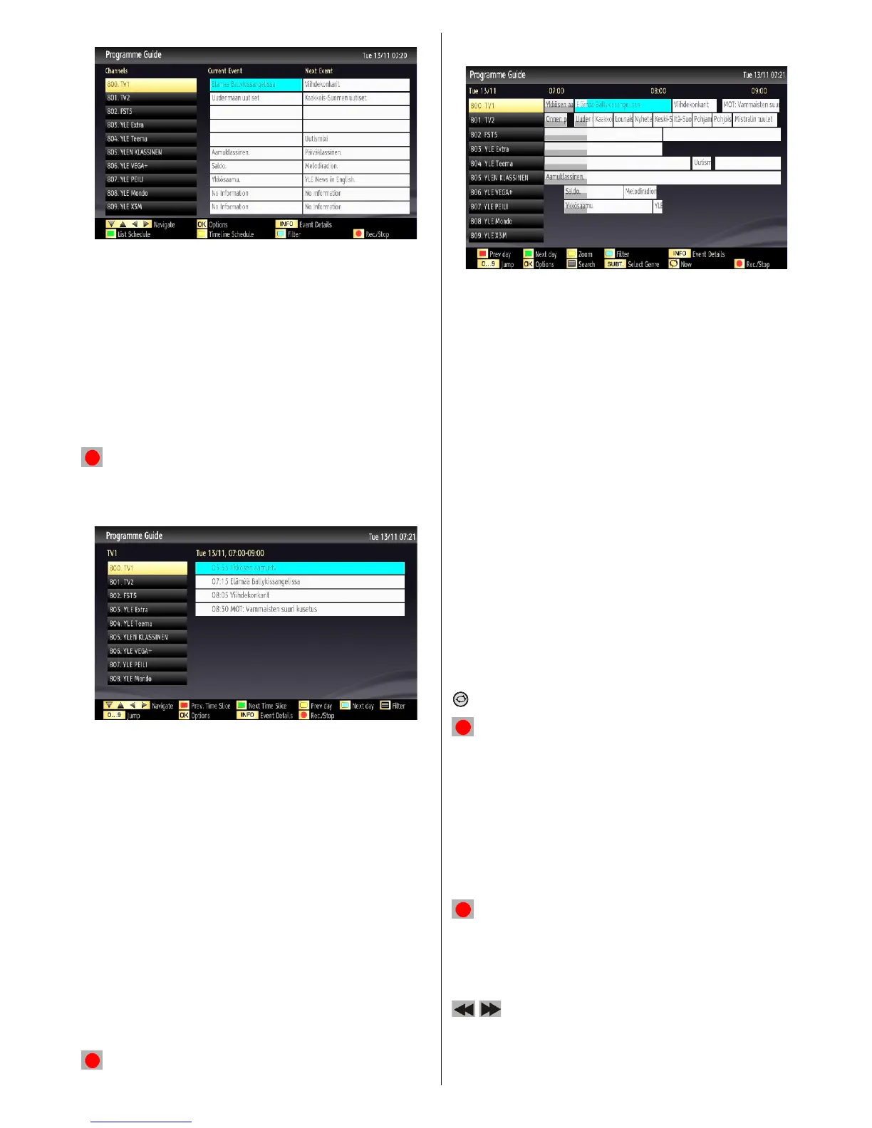 Yellow button (Prev Day): Displays the programmes