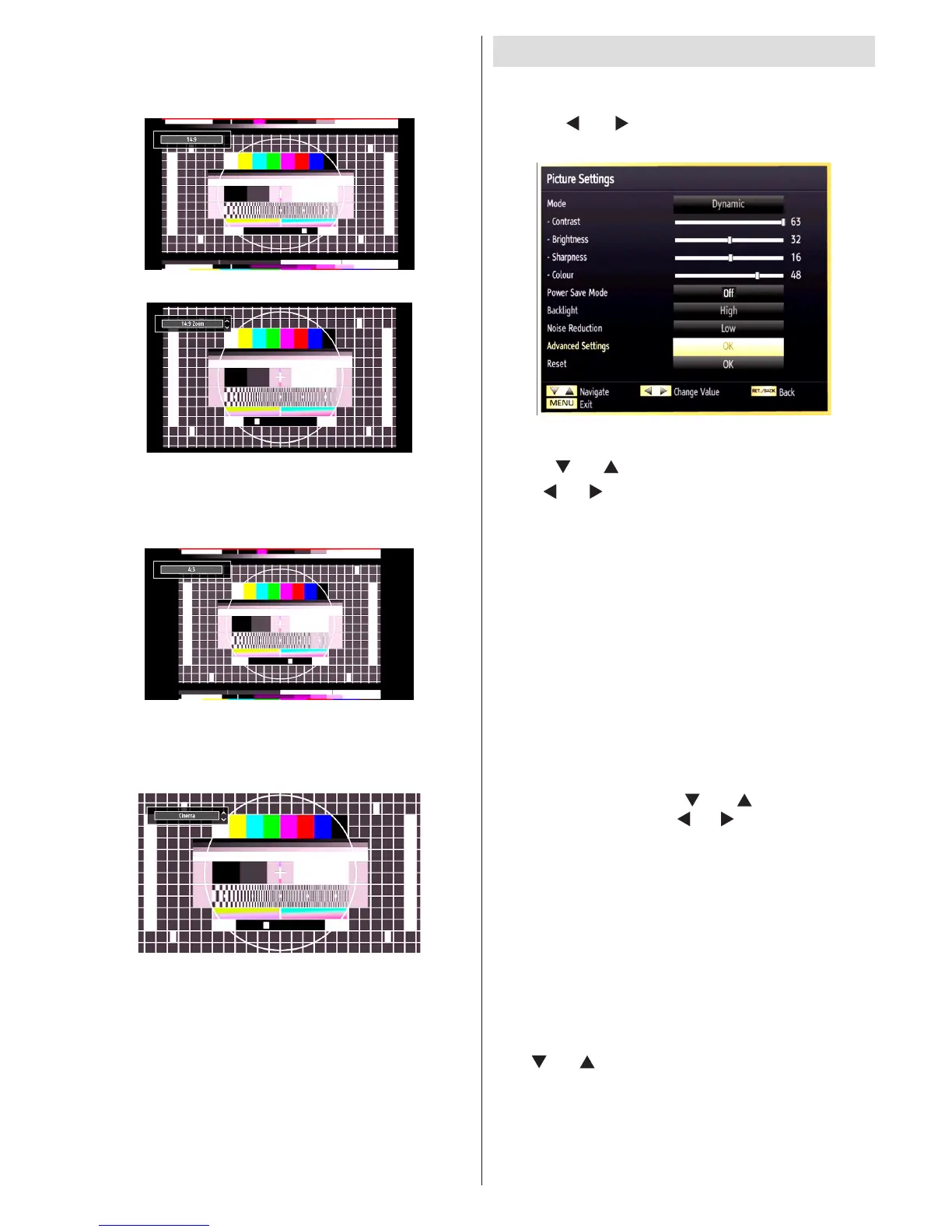 Press “MENU” button and select the Picture icon