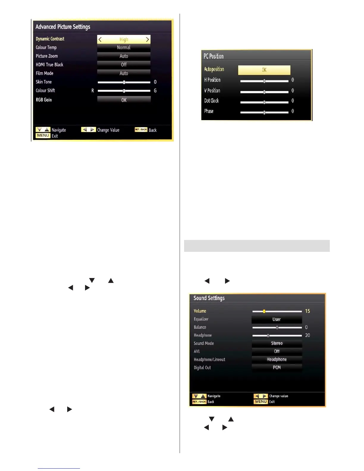 identical to settings dened in TV picture menu under
