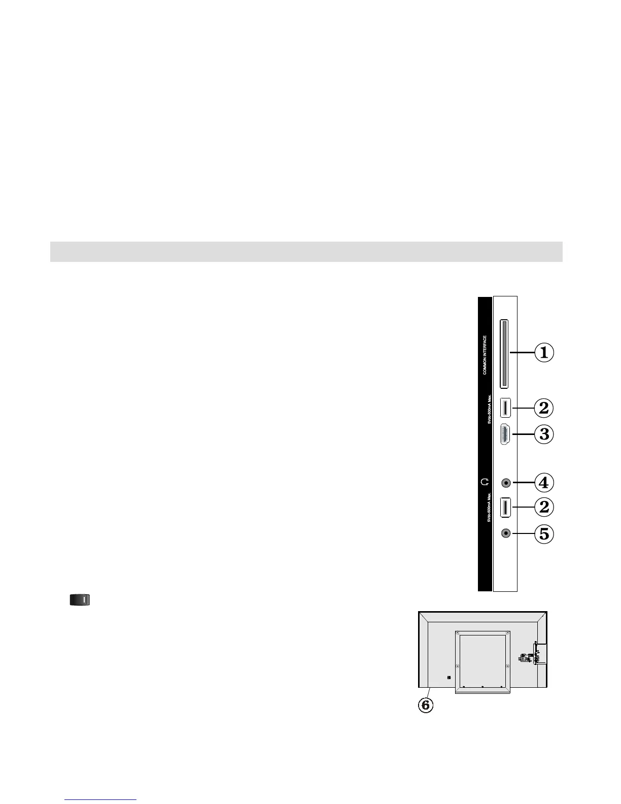 1. CI-kortplats används för att sätta in ett CI-kort. Med ett CI-kort kan du titta på alla kanaler som du