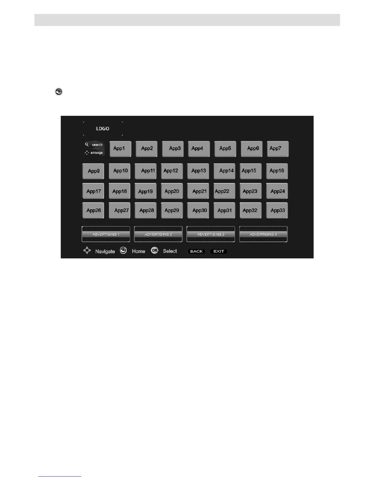 Press “ ” button on your remote control and portal application options will be displayed. Application options