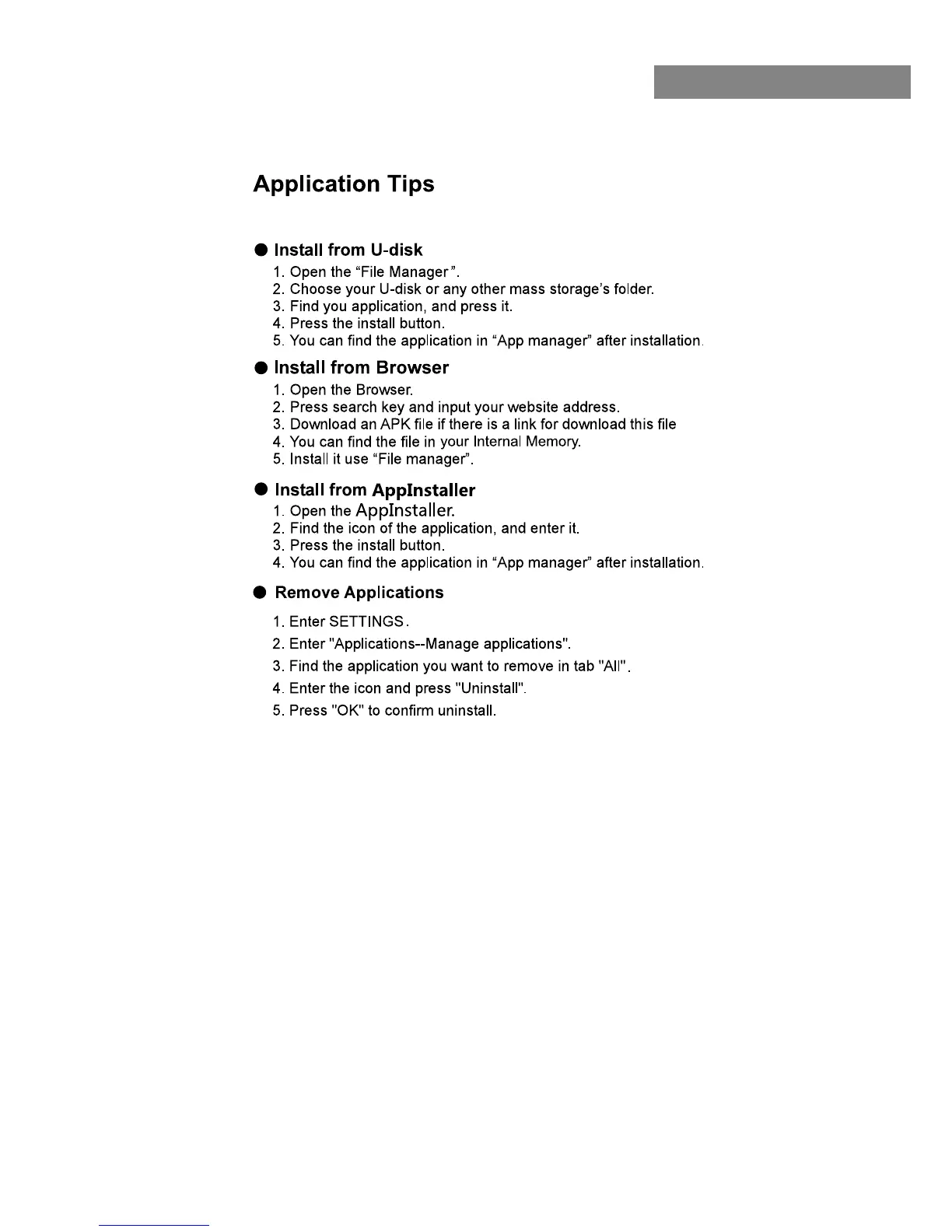 Andersson SmartTV-HDMI2.0 - Application Tips; Install from U-disk; Install from Browser; Install from AppInstaller