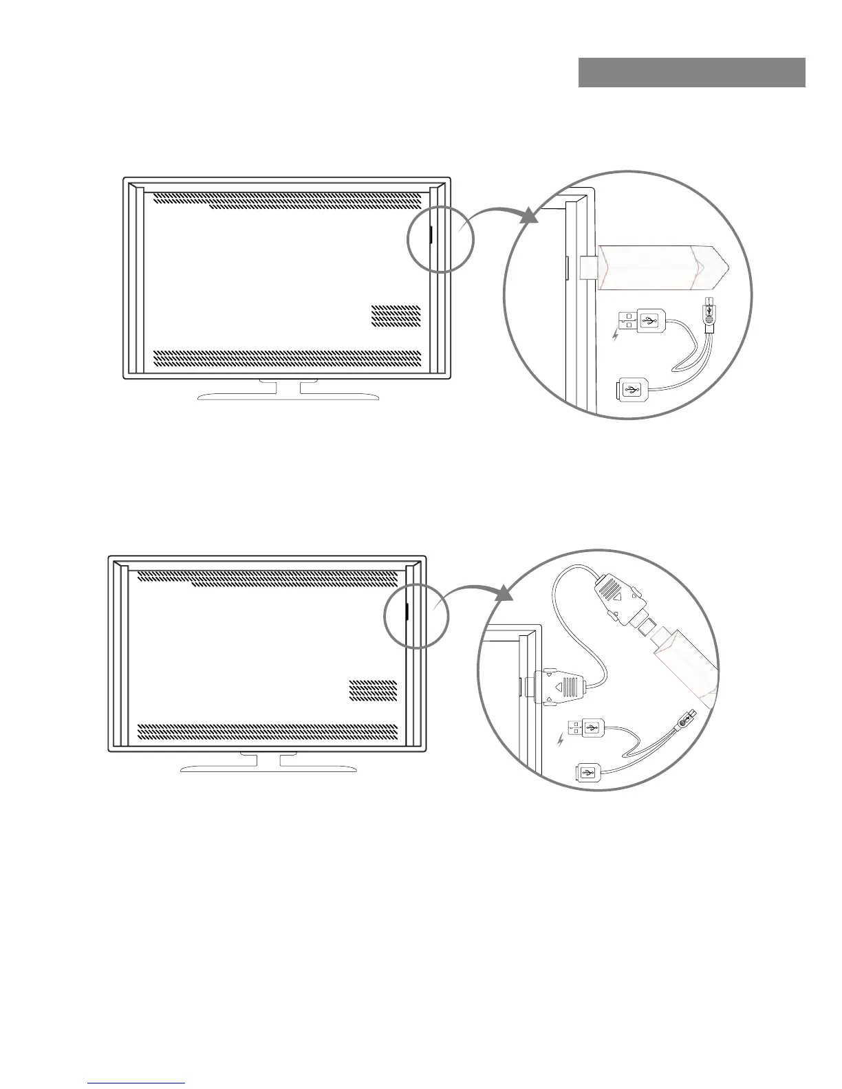 Connect 's mini USB port to TV's USB port via USB supply line for power supply.