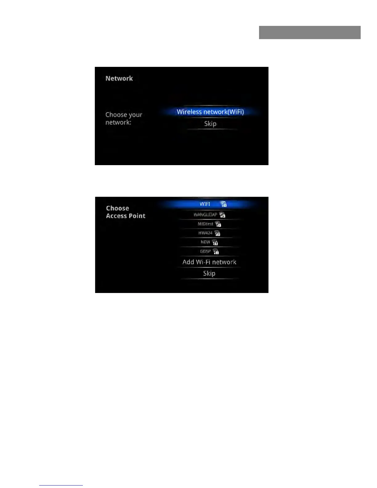 Wireless network(Wi-Fi), please select a Wi-Fi Access Point: