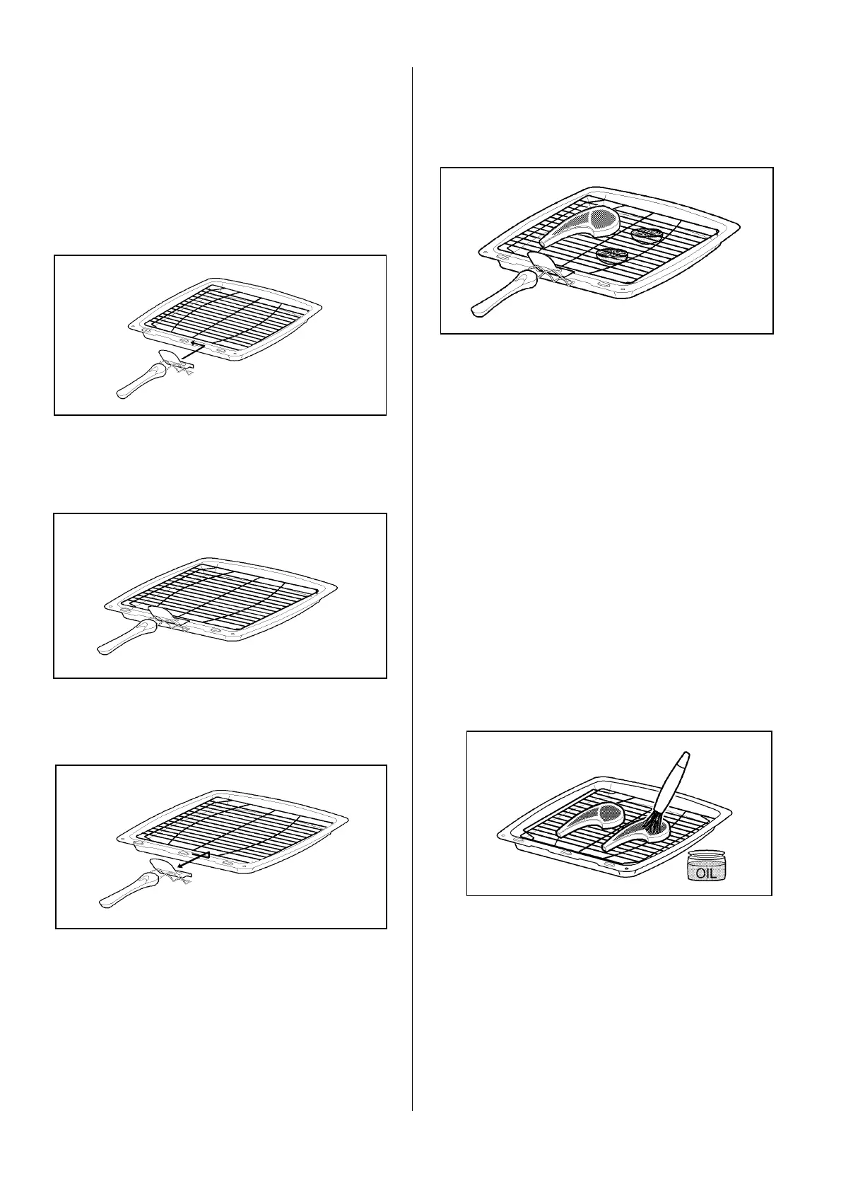 · Place food on the grid in the grill pan to allow