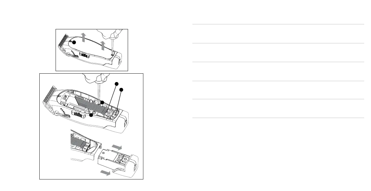 4. Håll ner kabellåset och ta bort batteriet från klippmaskinen.