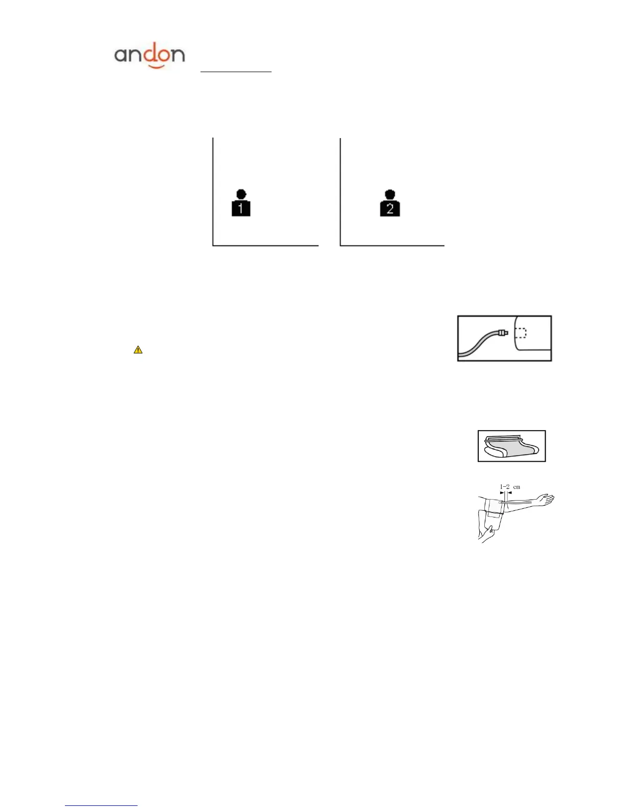 b. Place the cuff around a bare arm 1-2cm above the elbow joint.