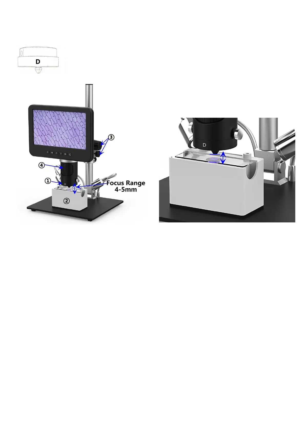 specimen should be around 4mm to 5mm), then fix the V-locker. Since the focus range is very short in