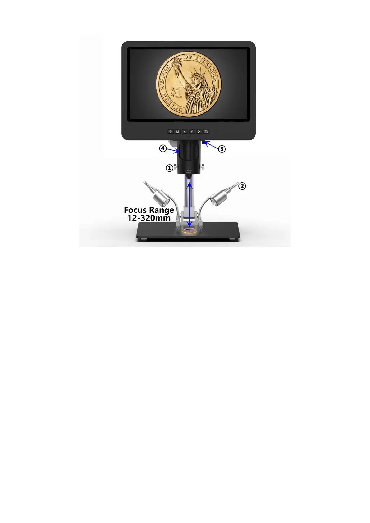 *In order to observe part of the coin, please lower the arm height to shorten the object distance, then