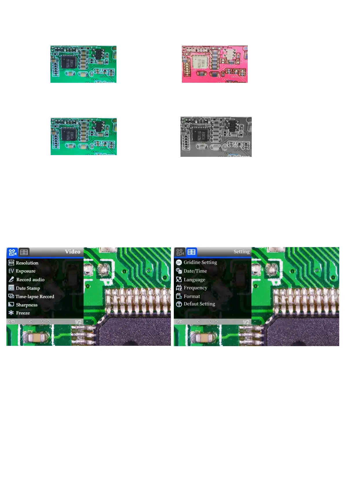 (pic 9 video menu) (pic 10 setting menu)