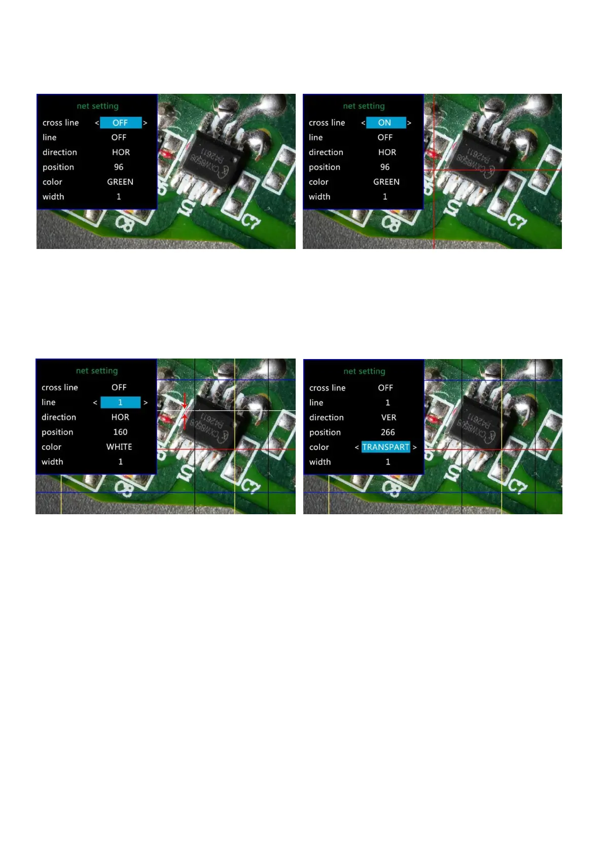 (Pic 11 Gridline Setting menu) (Pic 12 Cross line on)