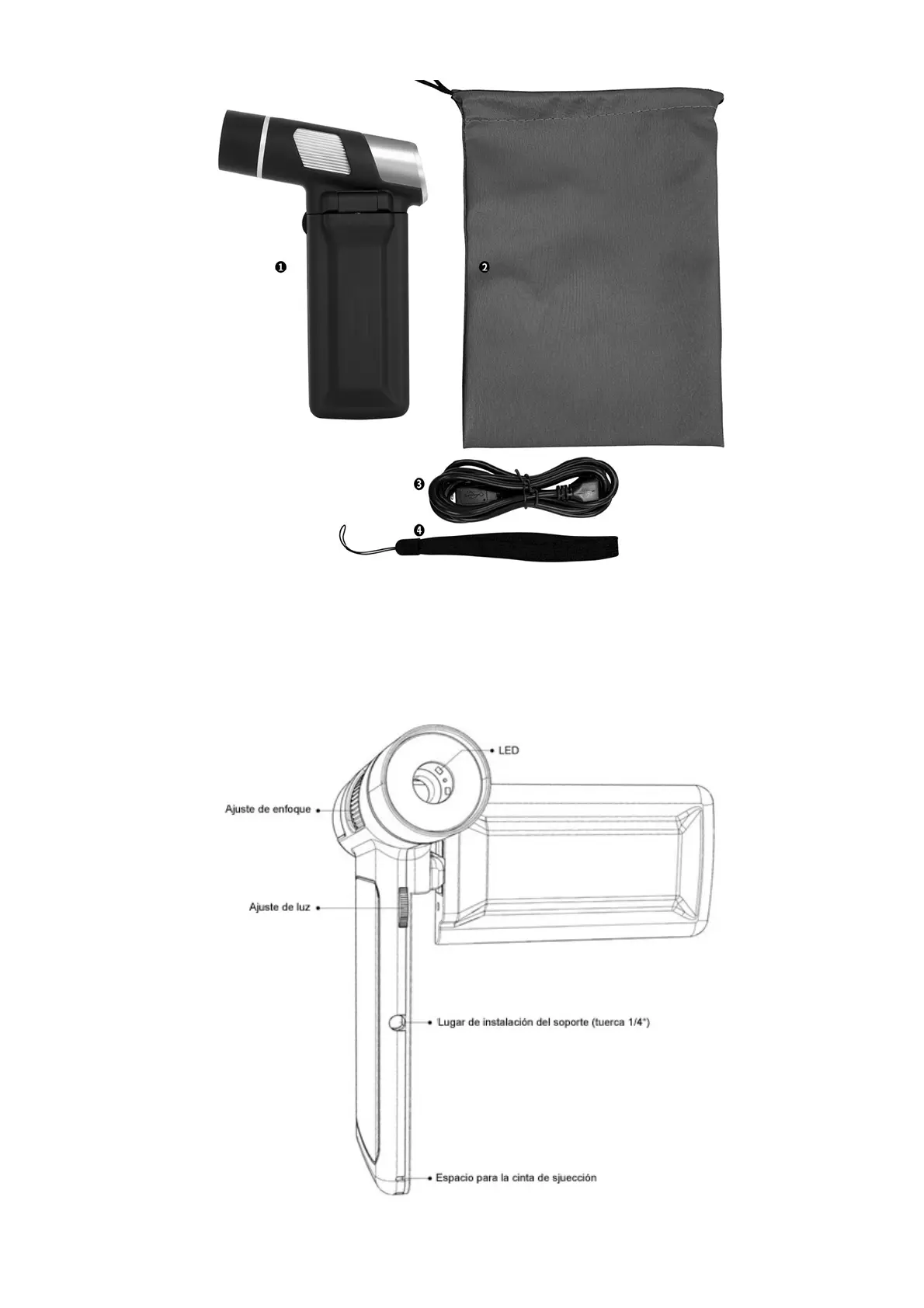 ①Microscopio ②Bolso ③Cable USB ④Cinta de sujeción