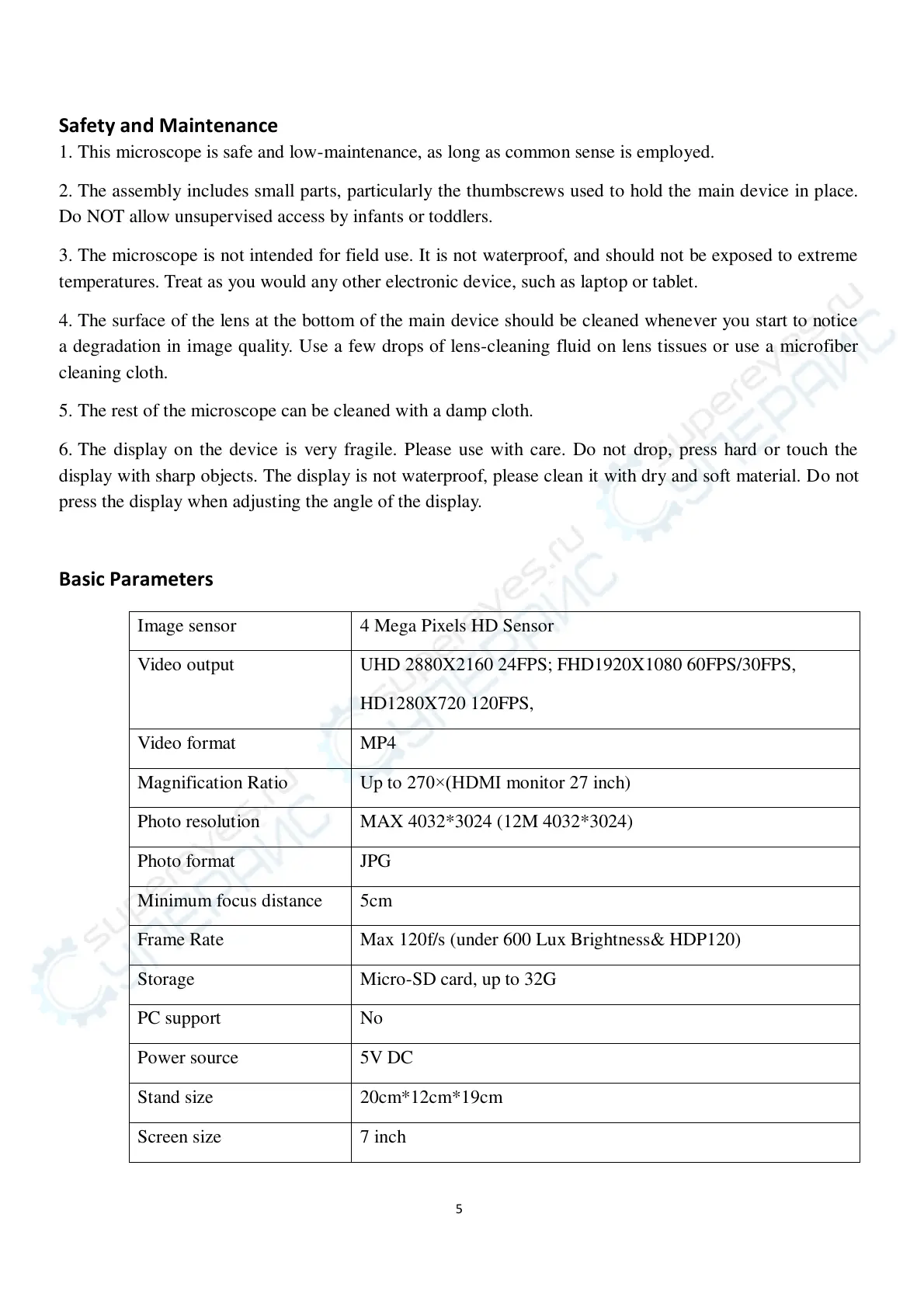 1. This microscope is safe and low-maintenance, as long as common sense is employed.