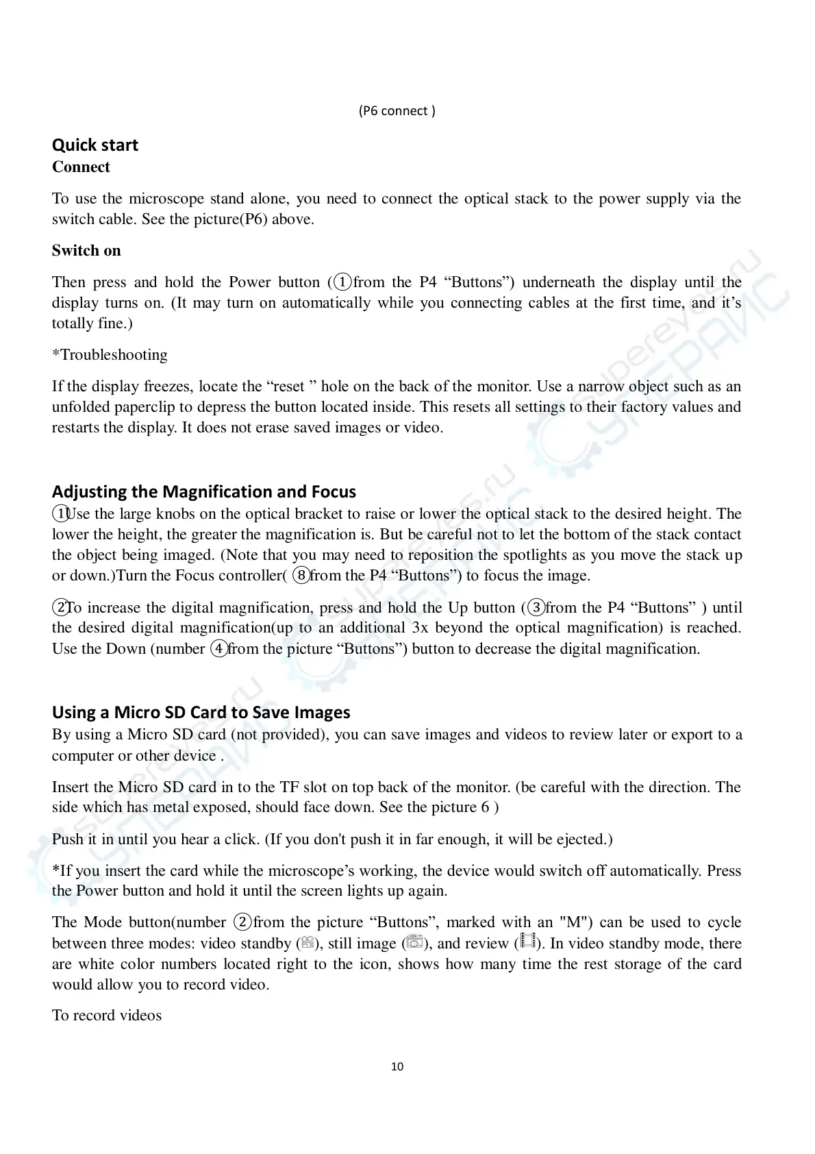 Use the Down (number ④ from the picture “Buttons”) button to decrease the digital magnification.
