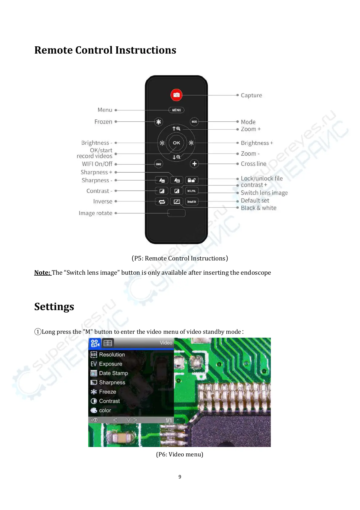 Andonstar AD409-Max - Remote Control Instructions; Remote Control Functions; Settings; Gridline Setting