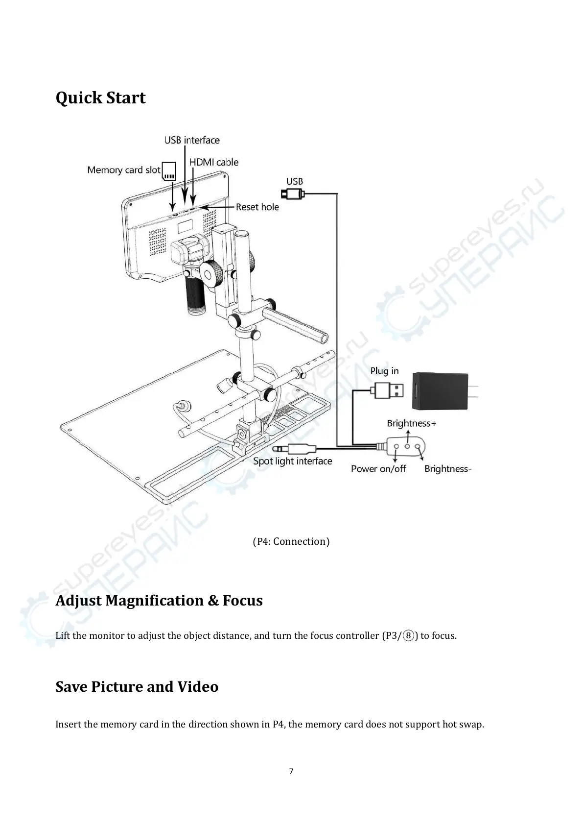 Andonstar AD409-Max - Quick Start; Adjust Magnification & Focus; Save Picture and Video