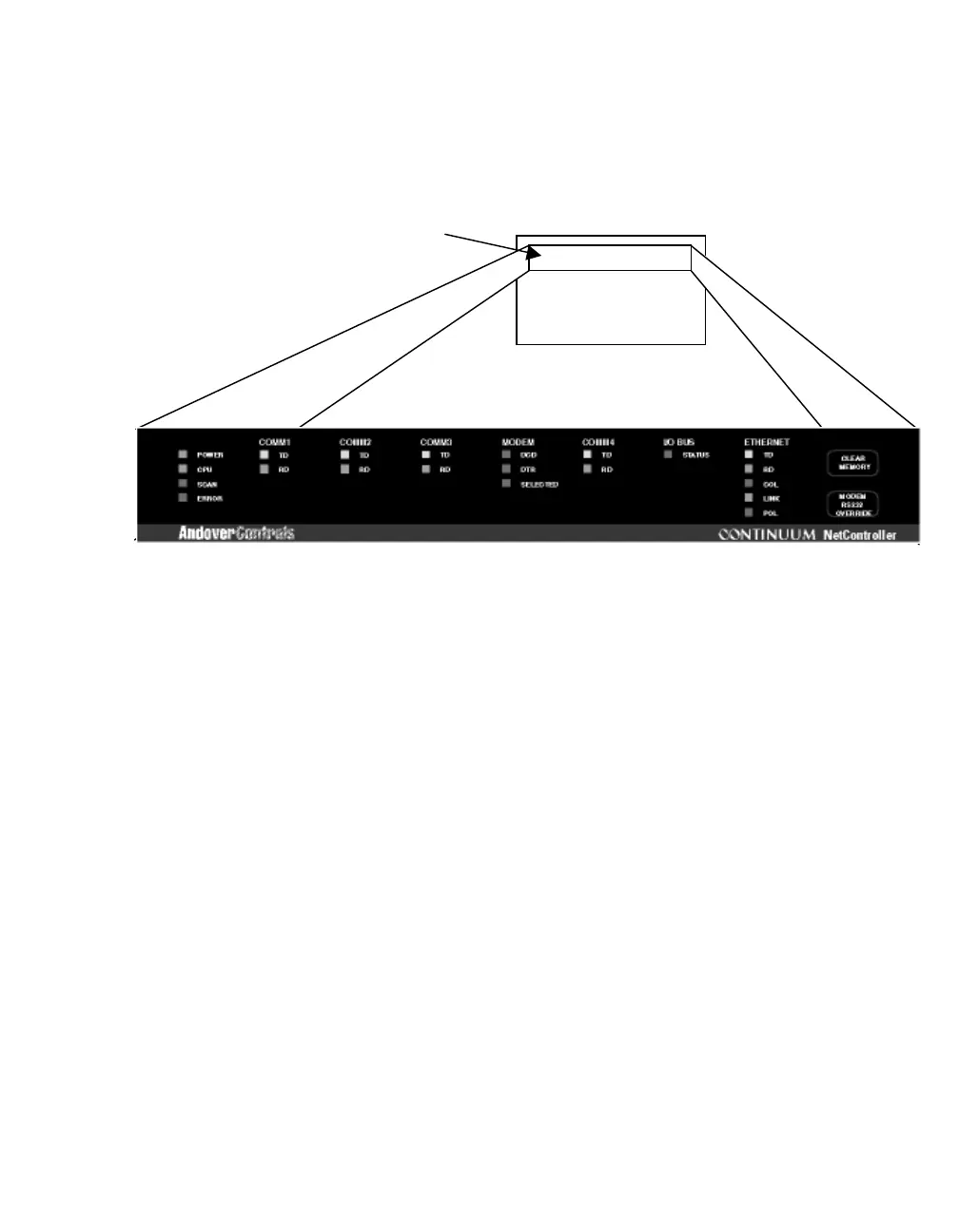 The NetController includes a complete indicator status panel on the front of the module.