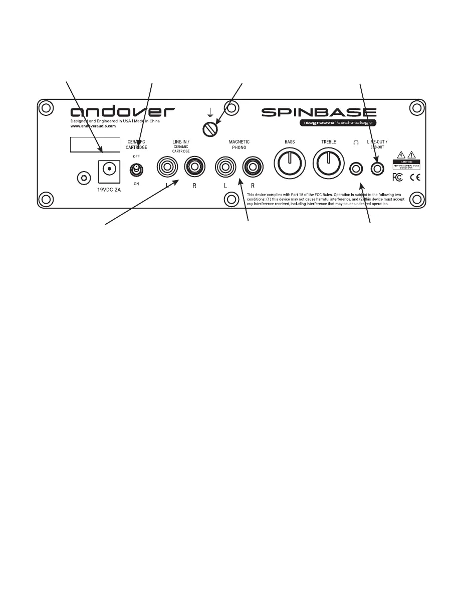 GROUND SCREW - Connect the GROUND wire from turntables with this feature to