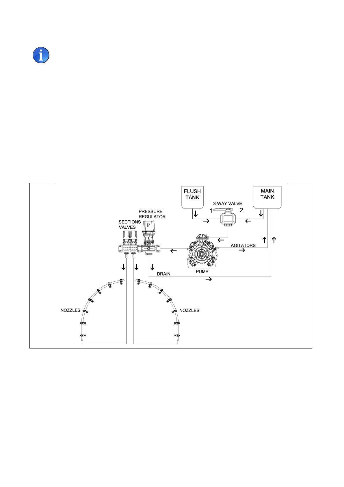 It is also possible to flush the spray equipment at first using clean water in the main tank. Fill some clean