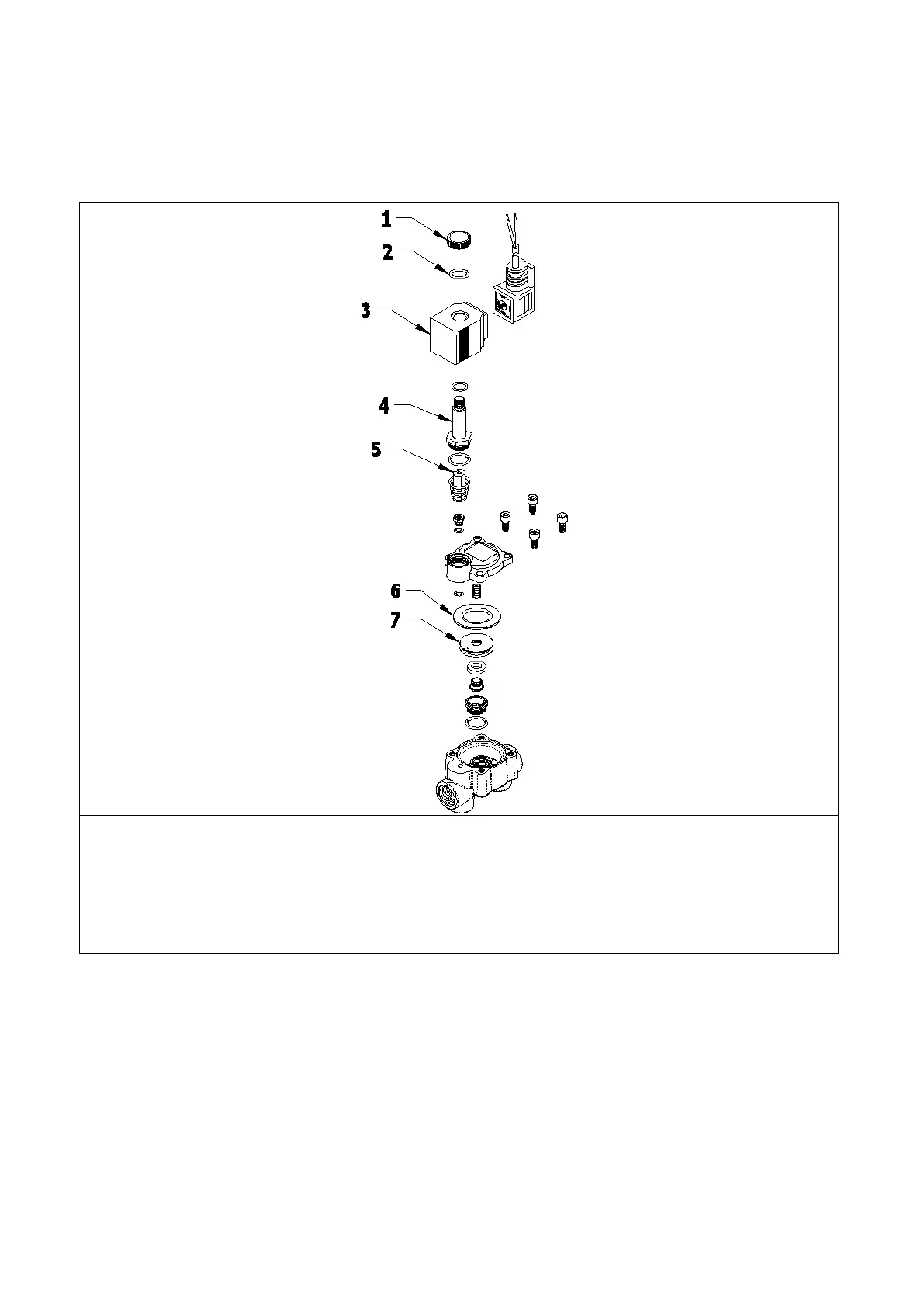 To check/clean the valve: remove the ring nut (1), pull out the solenoid (3), remove the cylinder (4) and
