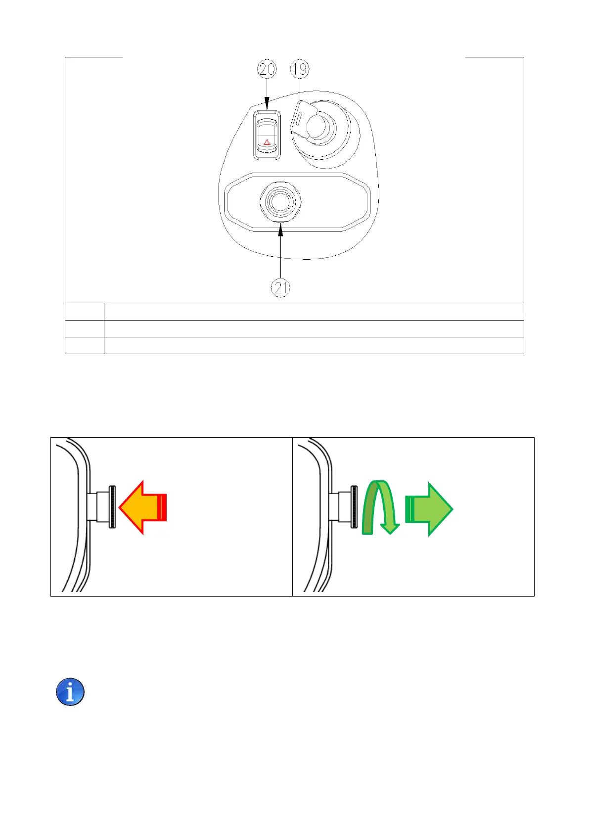 Pushing the button, the engine stops immediately and all other devices and moving parts of the machine will