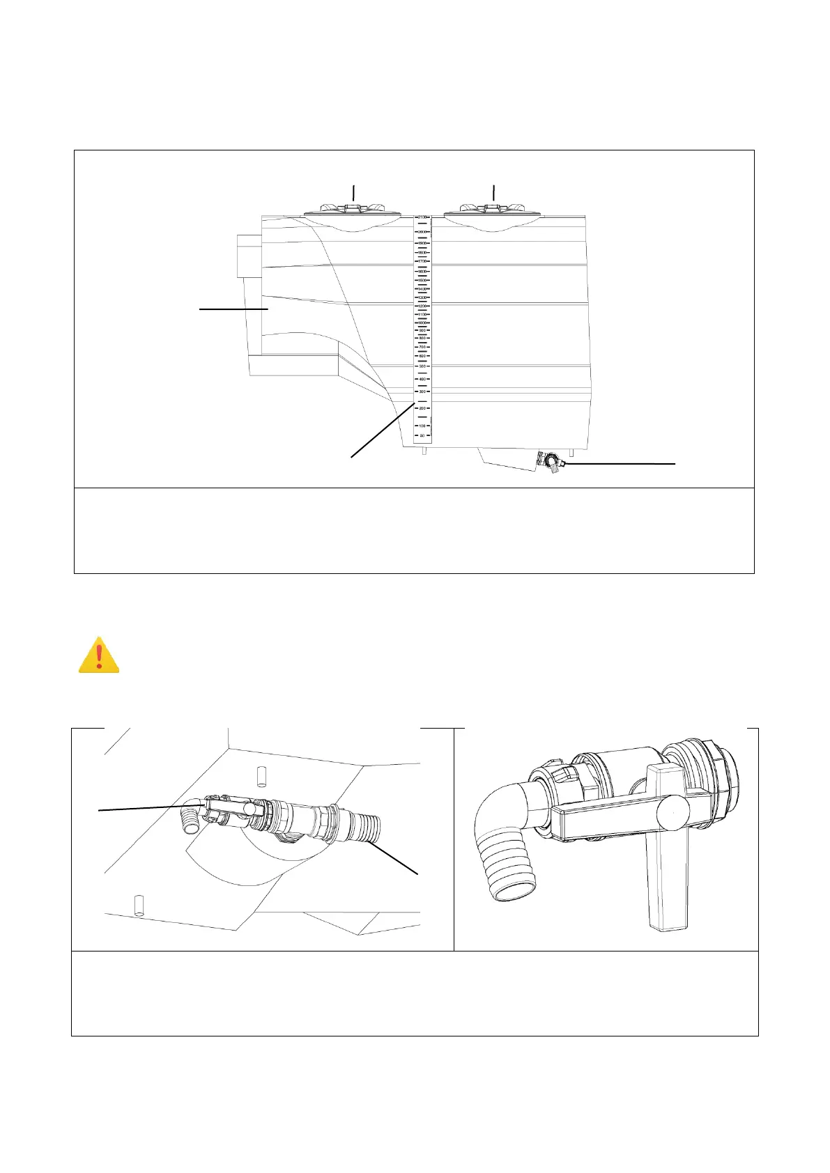 To empty the tank open the ball valves placed under the tank on the two sides: