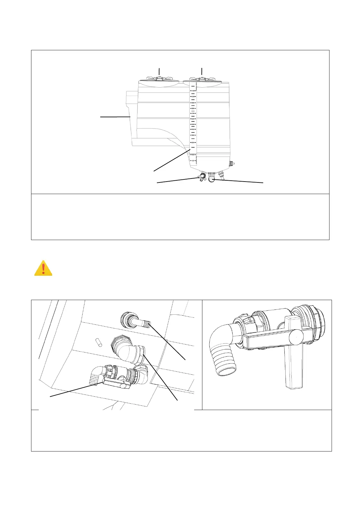 To empty the tank open the ball valves placed under the tank on the two sides: