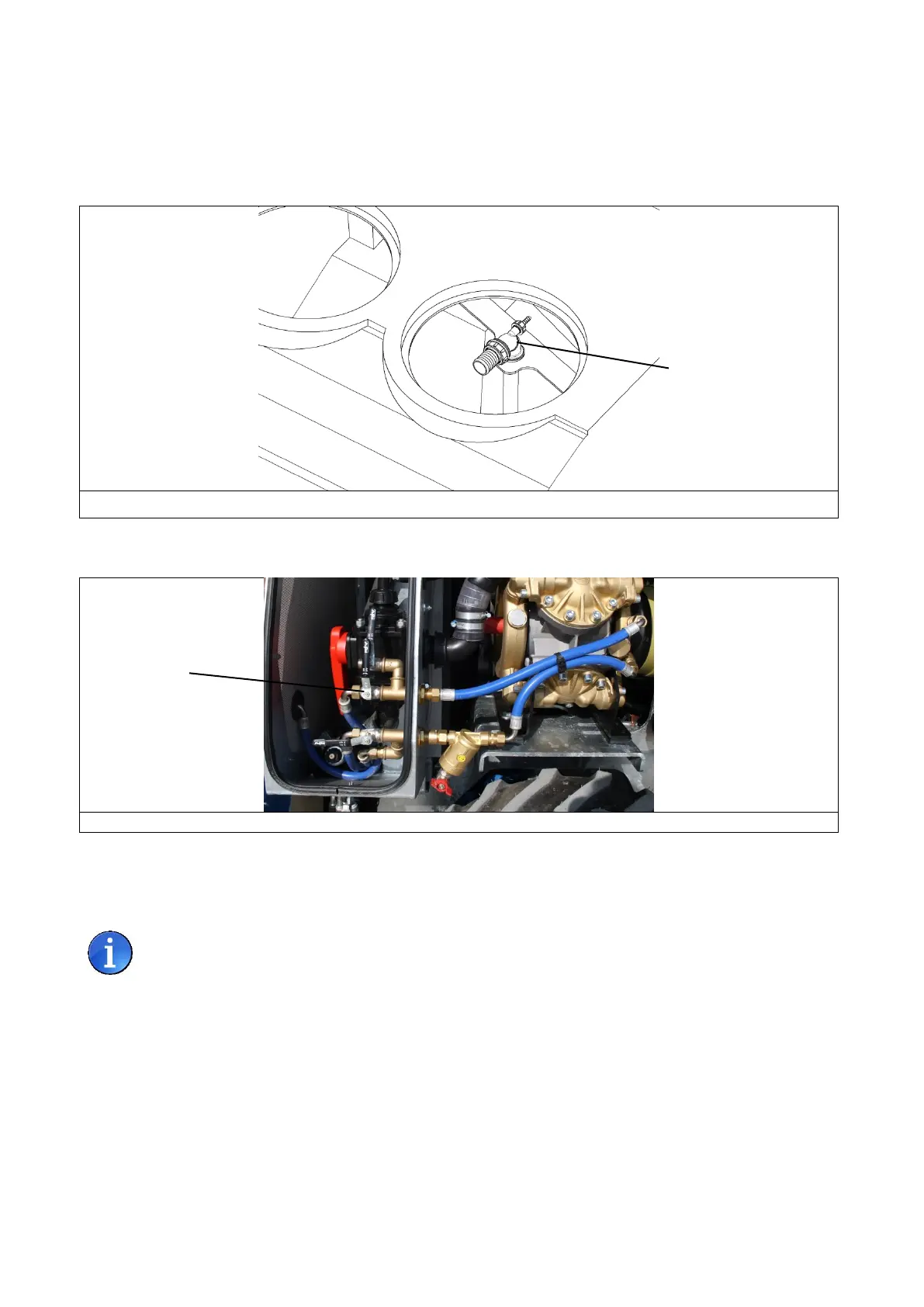 To deliver chemicals into the main tank, connect the hose to the fill-up point (1), make sure there is some