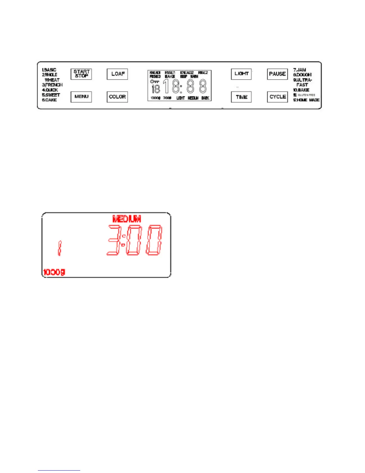 appliance is on. “1000g, 1 , Medium, 3:00” will appear in the LCD display screen (Fig 1),
