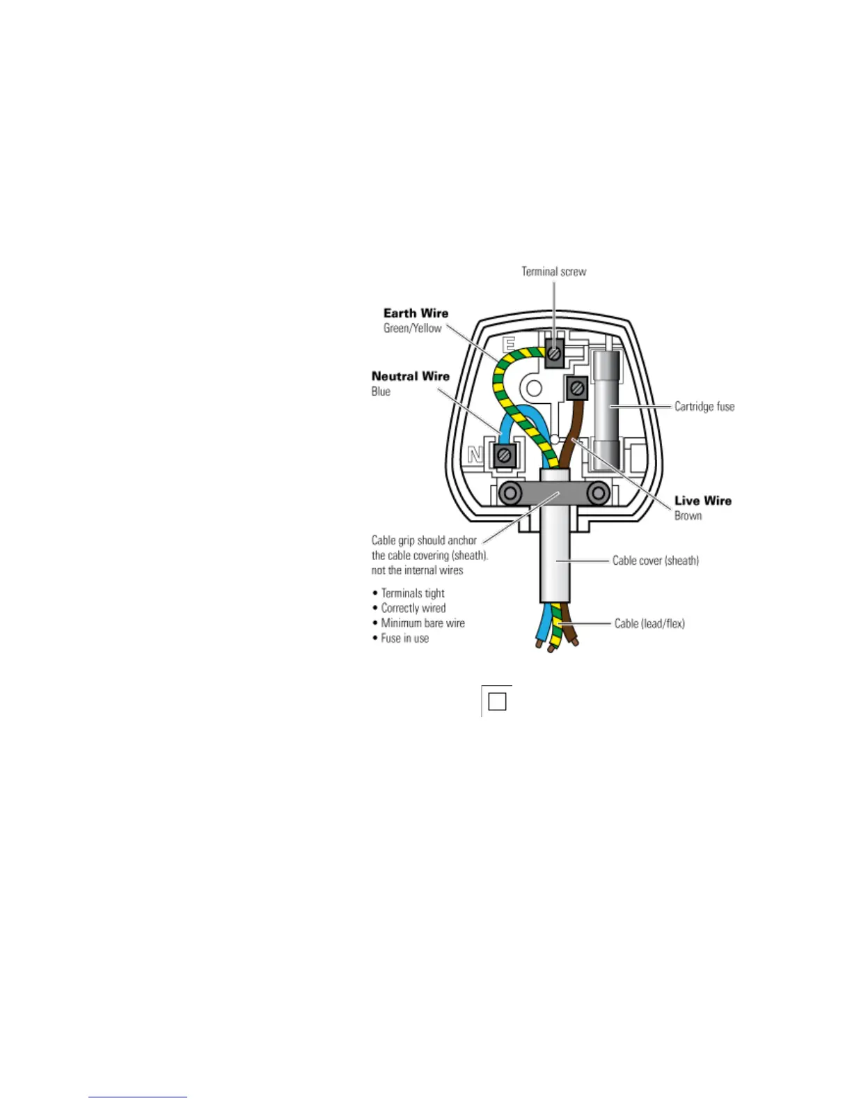 The plug must be protected by the correct AMP fuse; this will be indicated on the