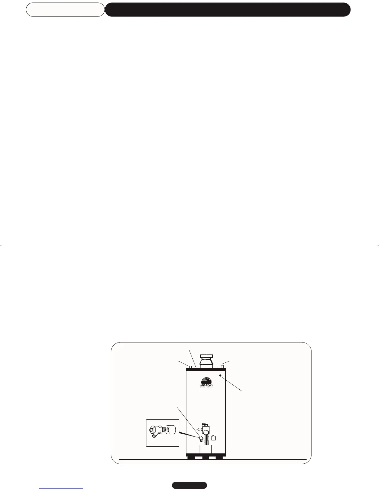 thermostat, drain cock and the pipe connections at the top of the heater.