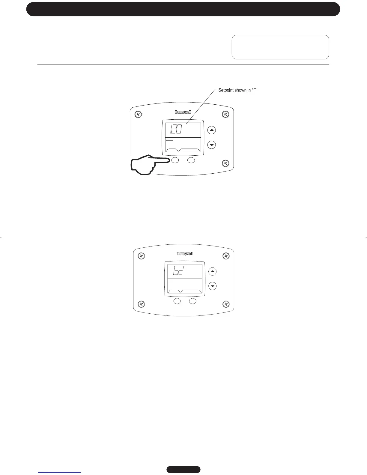 Step 5: Pressing “Select” button will return display to setpoint in format selected (°F or °C) immediately
