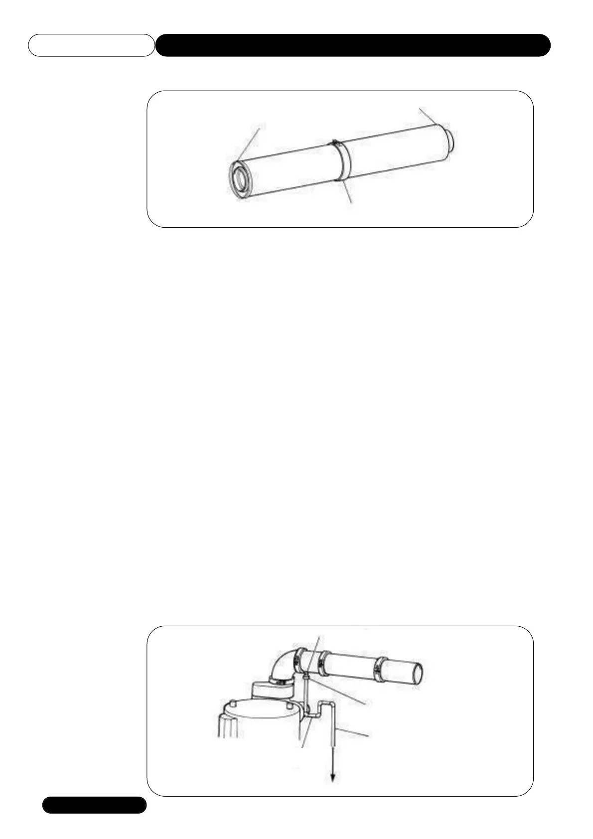 i) Use the large clamp supplied in the flue kit with the stepped gasket to seal the elbow