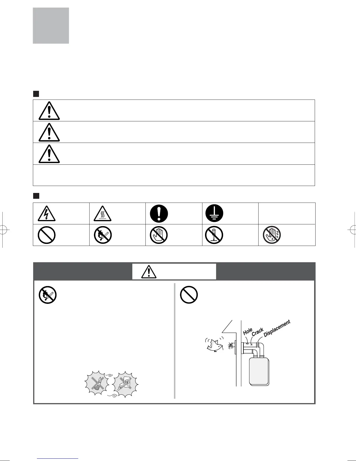 To prevent damage to property and injury to the user, the icons shown below will be used to warn of