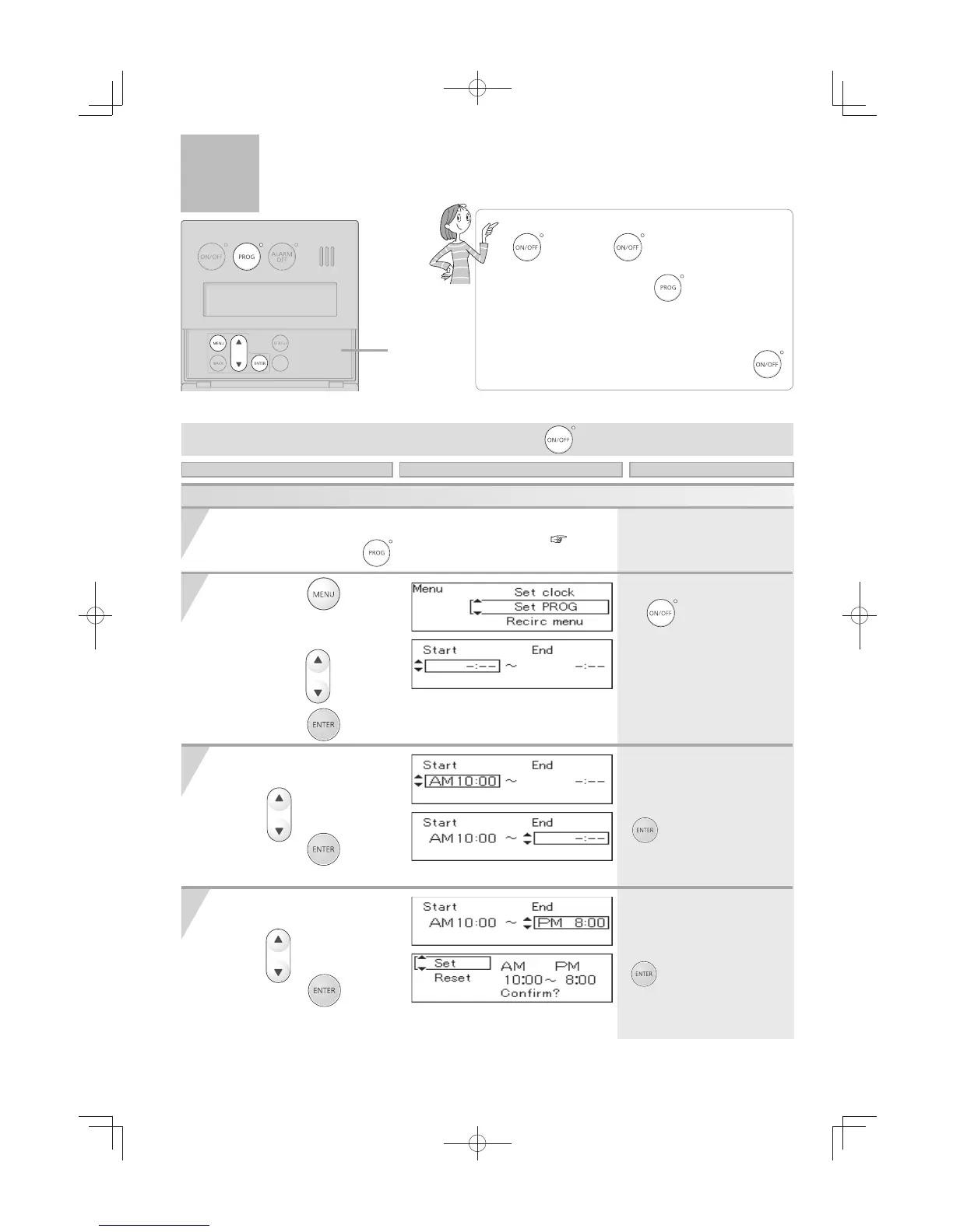 This example describes setting the "ON time" and "OFF time" to 10:00 am and 8:00 pm, respectively.
