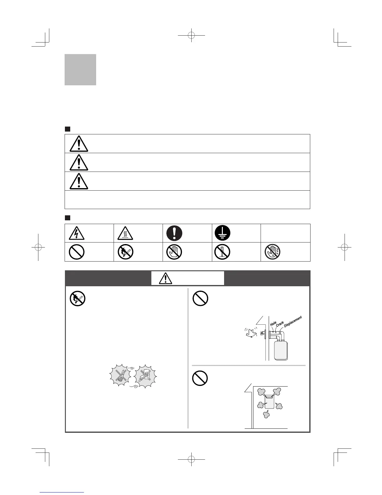 To prevent damage to property and injury to the user, the icons shown below will be used to warn of