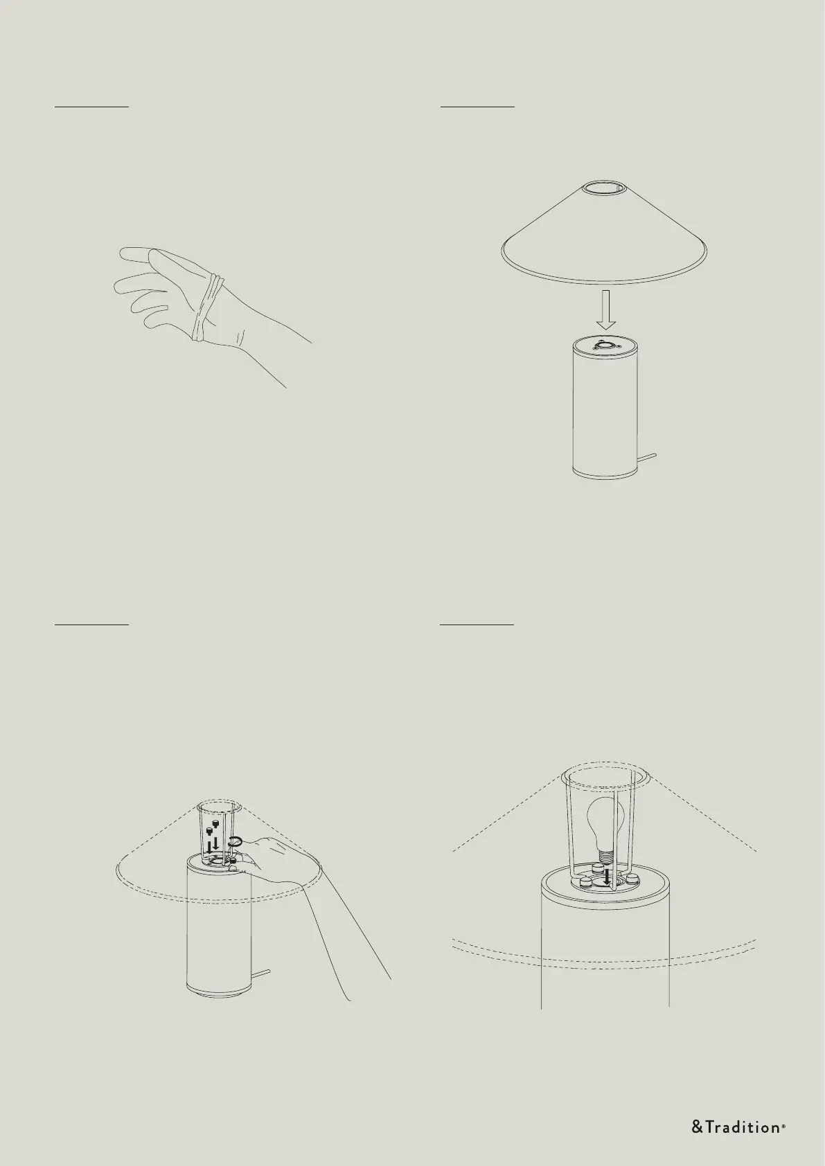 &Tradition Colette ATD6 - Assembly Steps; Step 1: Wear Gloves; Step 2: Align Shade and Base; Step 3: Secure Shade